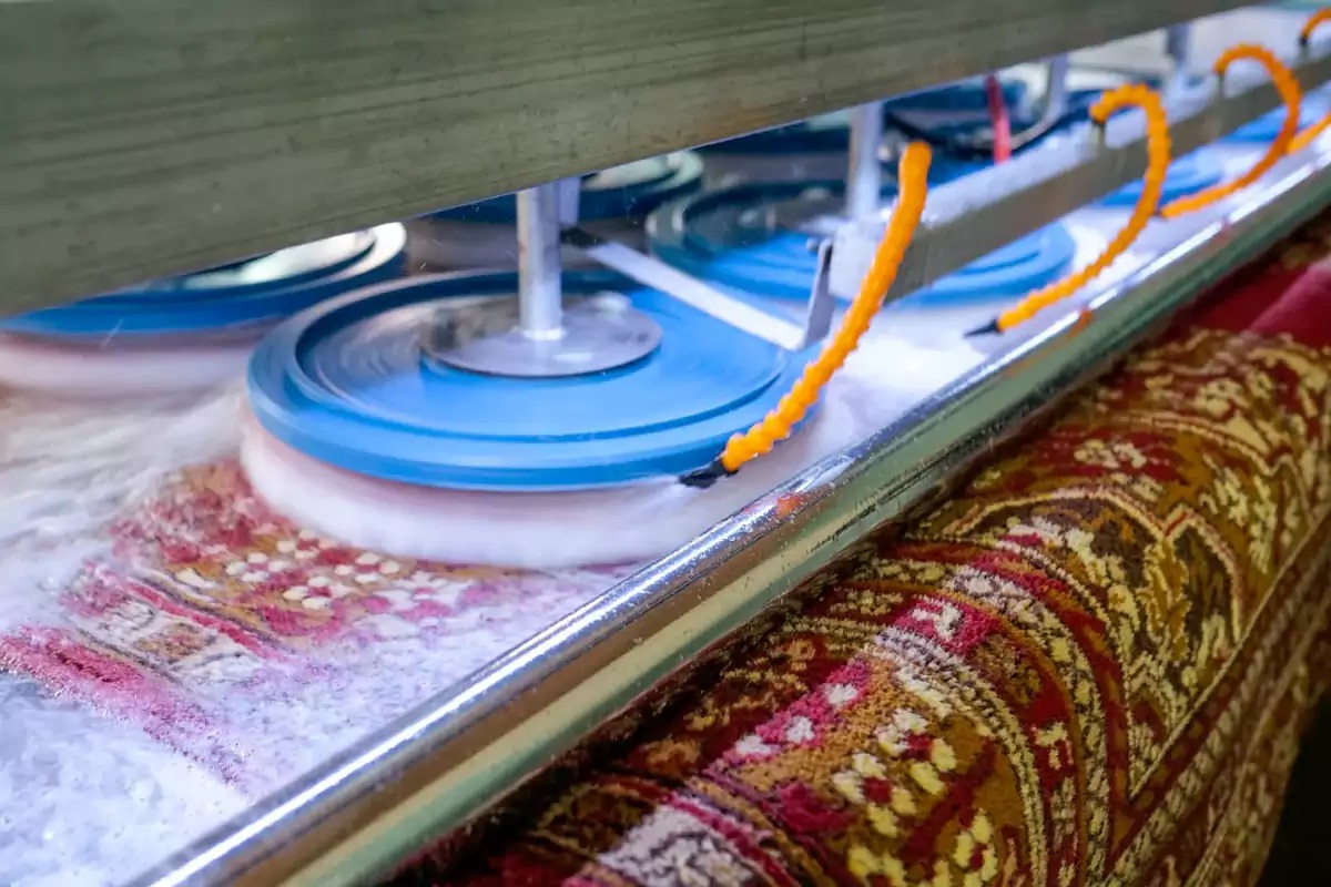 شستشوی فرشهای ابریشمی با مواد مخصوص و دستگاههای حساس برای حفظ رنگ و بافت.