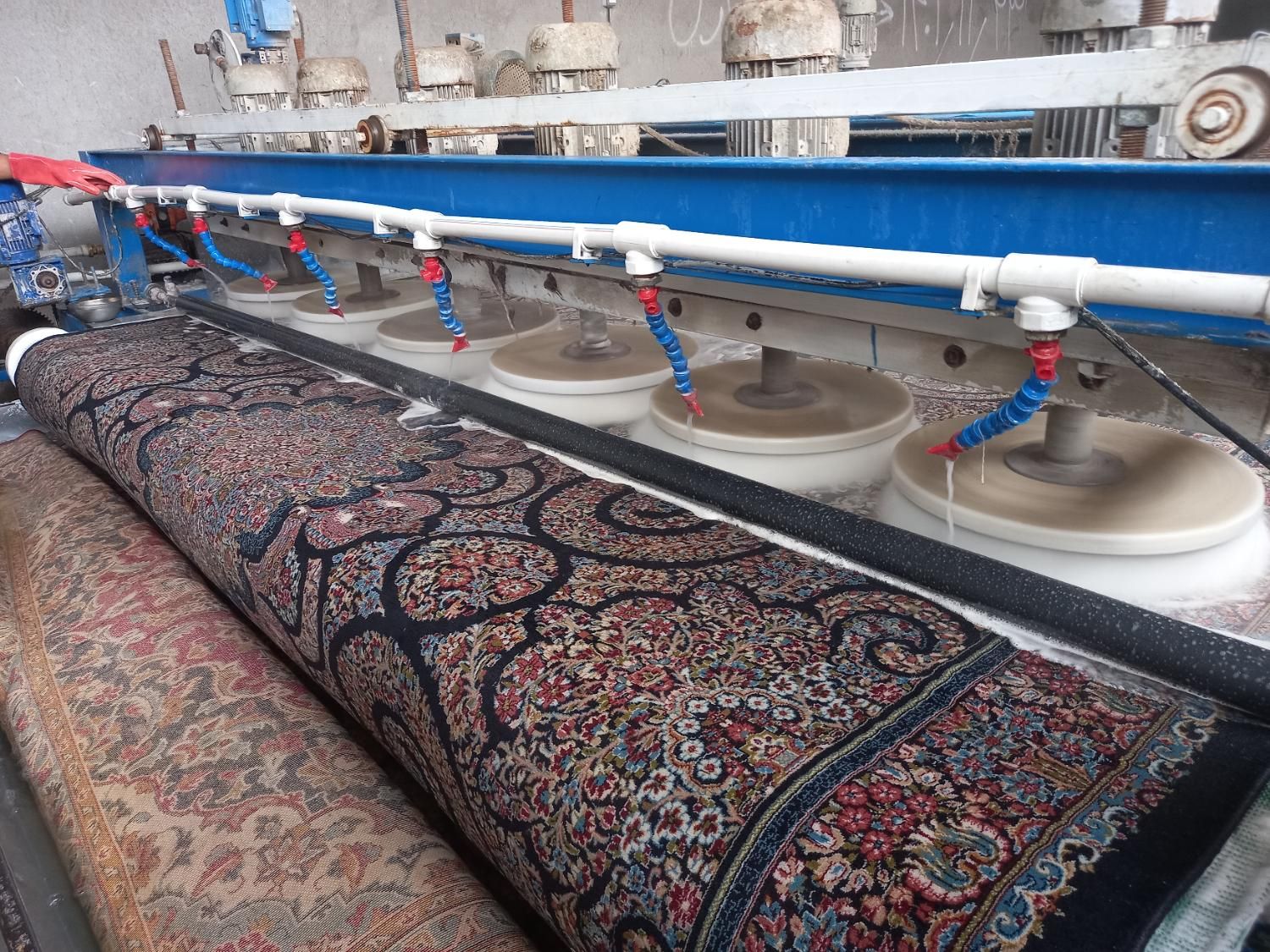 شستشوی فرشهای ابریشمی با مواد مخصوص و دستگاههای حساس برای حفظ رنگ و بافت.